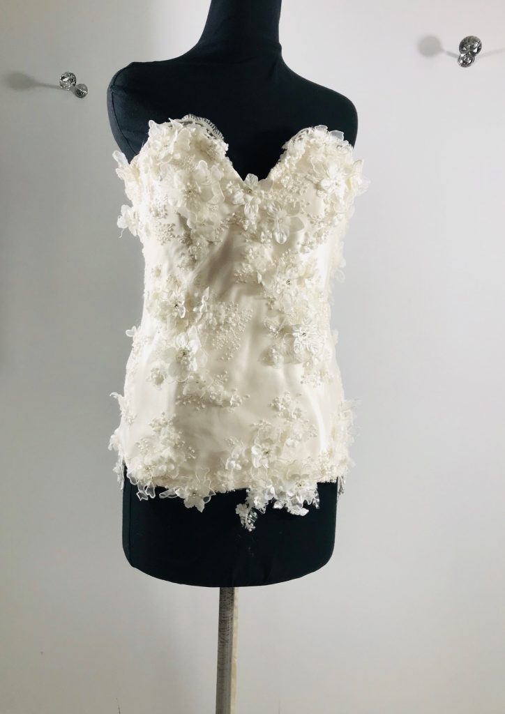 A flattering sweetheart neckline, fully boned bodice supports curves, then cascades down into a sofltly flowing base.