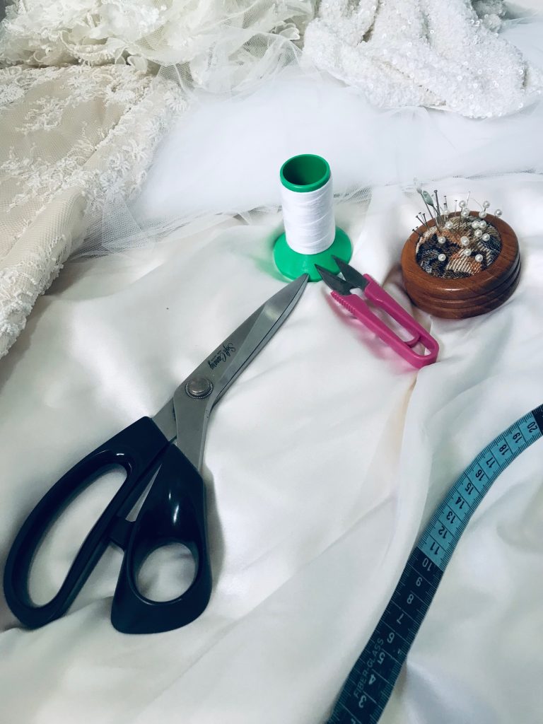 An assymetrical gown with a beaded flow of waves scrolling around the body form. Who doesn’t appreciate the glamour of the movies?